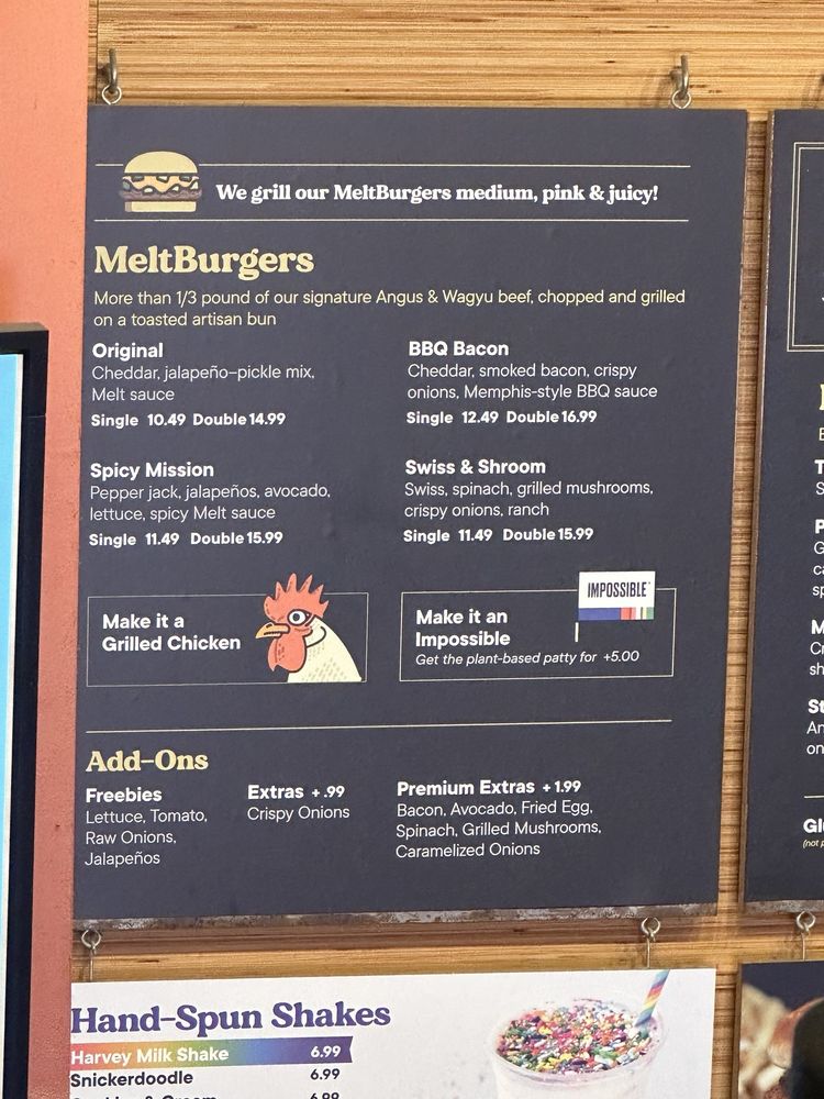 Introducing the menu at The Melt, located in San Francisco, offers a variety of options for all types of diners. From Crispy Chicken Sandwiches to MeltBurgers and Impossible Burgers, there is something for everyone. The menu includes classics like the Classic Crispy Chicken and innovative options like the Impossible Spicy Mission. Customers rave about the delicious food and excellent customer service, making it a go-to spot for fast, high-quality meals. With options for vegan and vegetarian diners, as well as gluten-free and dairy-free options, The Melt caters to a wide range of dietary preferences. The spacious and trendy atmosphere, combined with great food and attentive staff, make The Melt a must-visit for those looking for a satisfying meal in San Francisco.